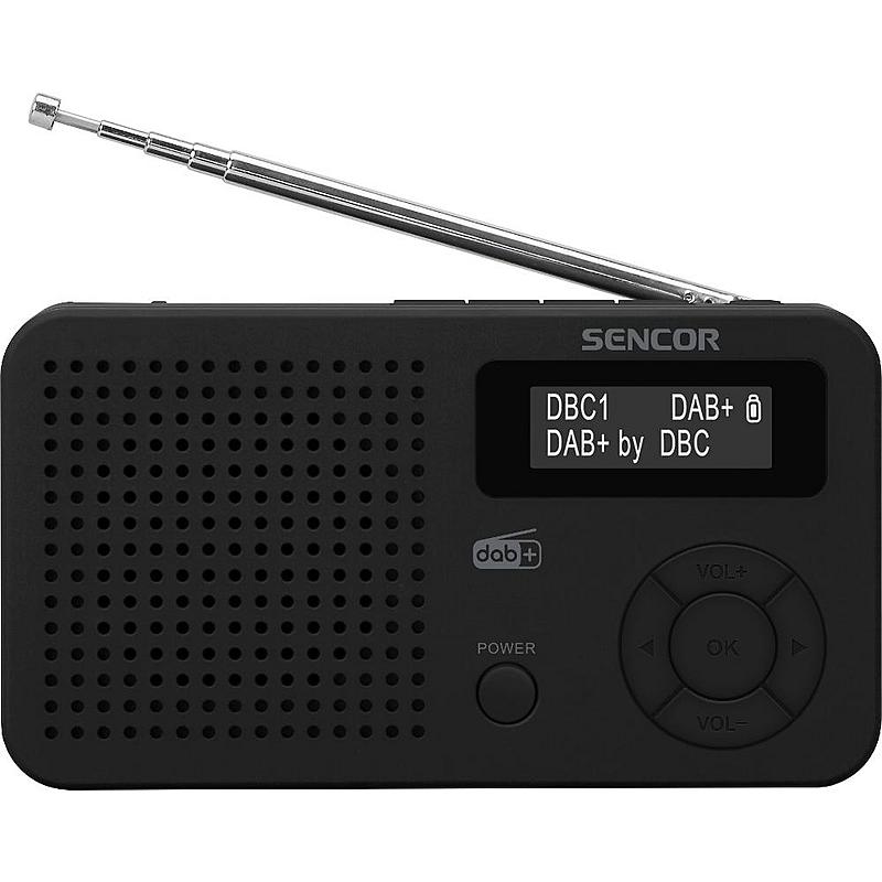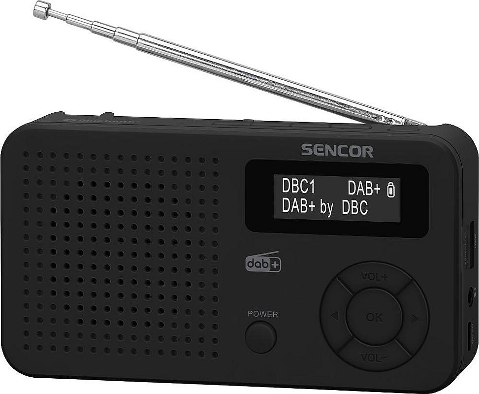 Digitální rádio Sencor s DAB+, FM, Bluetooth a USB vstupem. Výkon 1,2 W a automatická aktualizace času.