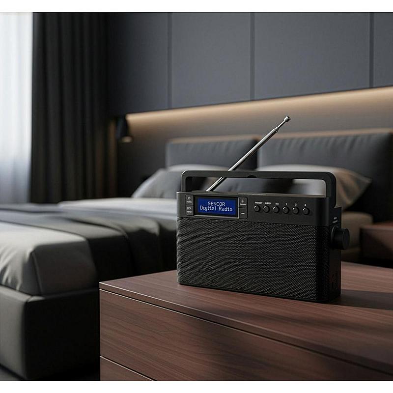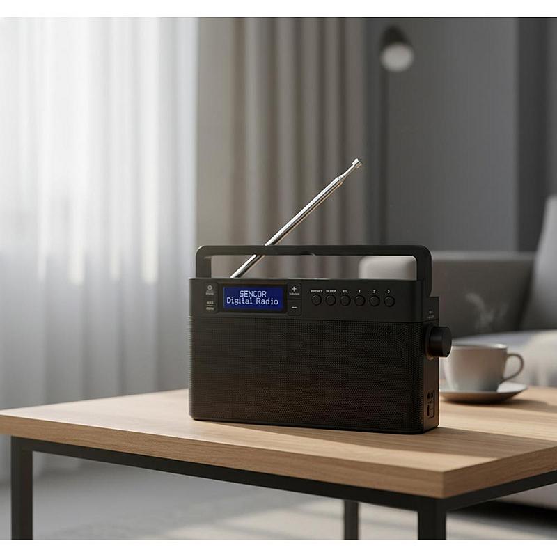 Digitální rádio Sencor s výkonem 6 W, DAB+ a FM tunerem a nabíjením přes USB-C.