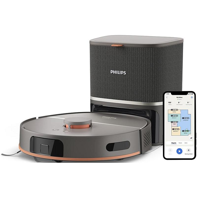 Robotický vysavač Philips s funkcí automatického vyprazdňování, dvojitým rotačním mopem a LDS navigací.