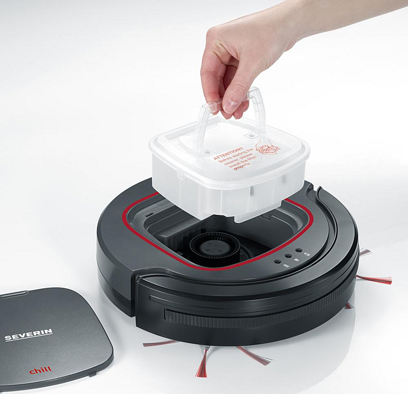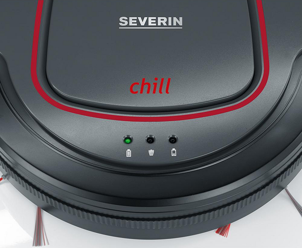 Robotický vysavač Severin s LED kontrolkami, objemem nádoby 0,4 litru a senzorem proti pádu ze schodů.