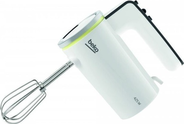 Ruční šlehač Beko se čtyřmi rychlostmi a funkcí Turbo. Ergonomicky tvarovaná rukojeť, 2 šlehací metly a 2 hnětací háky.