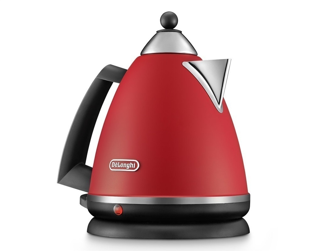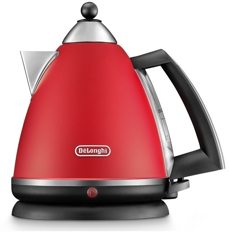 Rychlovarná konvice DeLonghi s objemem 1,7 l a s vyjímatelným a omyvatelným filtrem. Nerez ocel, trojí bezpečnostní jištění.