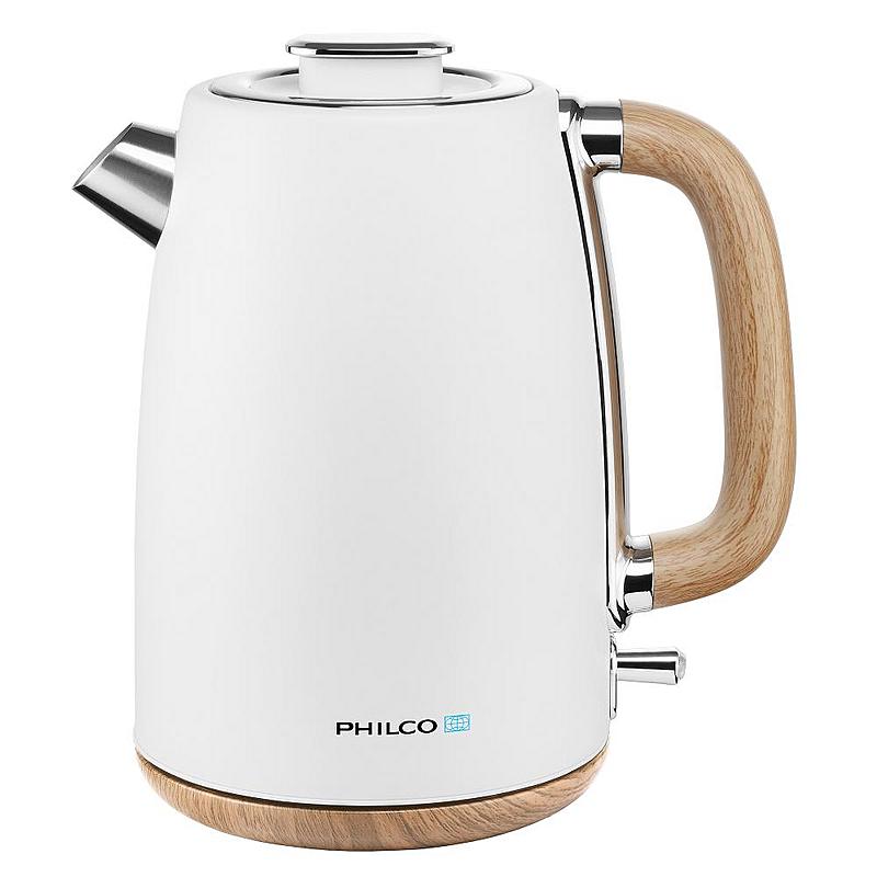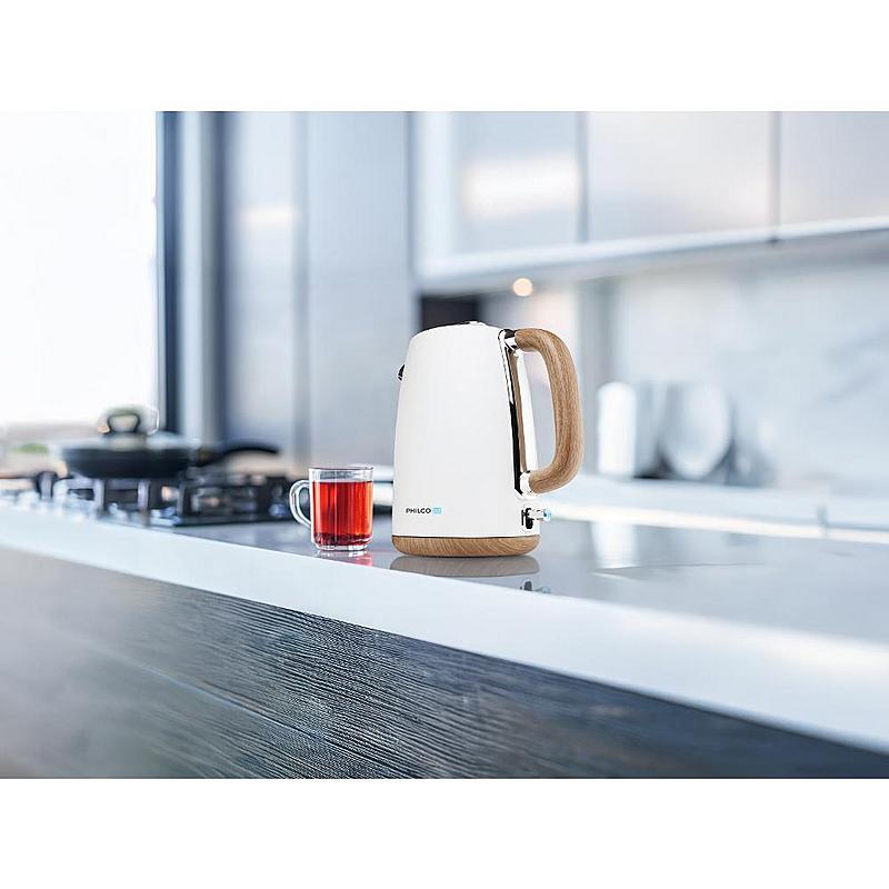 Rychlovarná konvice Philco s podsvíceným vypínačem, funkcí automatického vypnutí a objemem 1,7 l.
