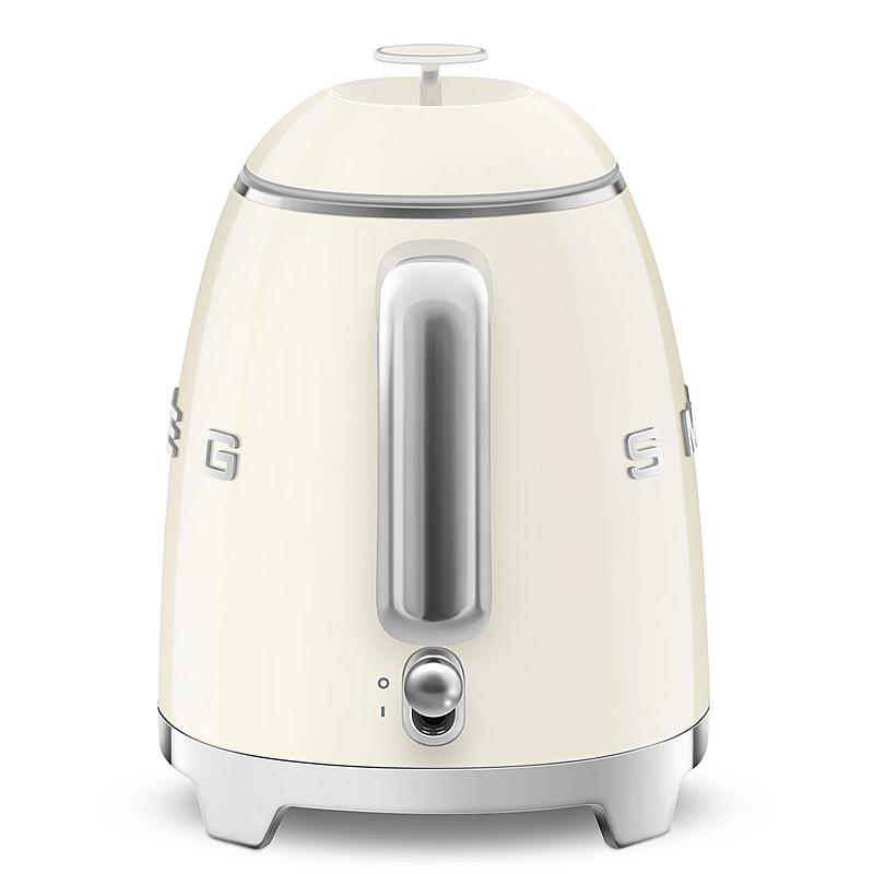 Rychlovarná konvice Smeg v retro designu s objemem 0,8 l, vodoznakem a příkonem 1400 W.