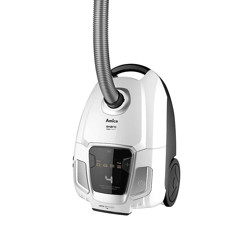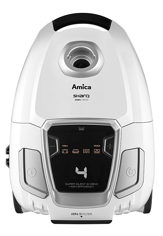 Sáčkový vysavač Amica s elektronickou regulací výkonu, LED displejem a turbokartáčem.
