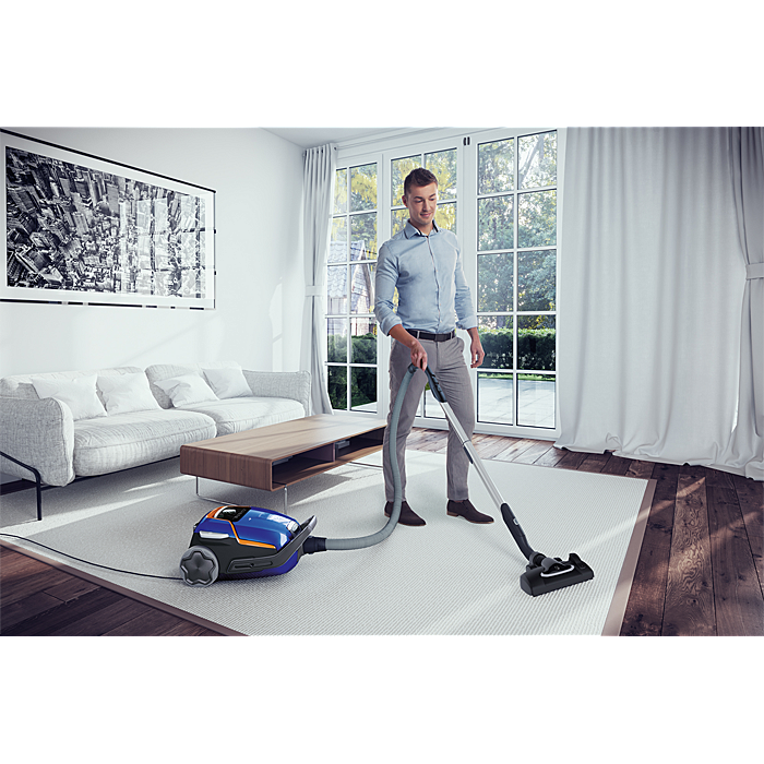 Sáčkový vysavač Electrolux s indikací plného sáčku, regulací výkonu a příkonem 850 W.