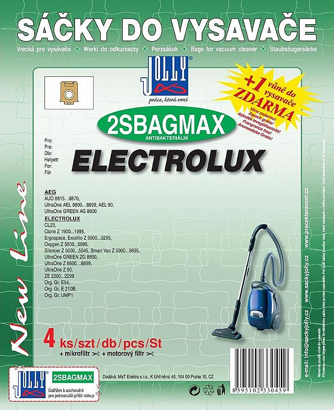 4 ks alternativních náhradních sáčků Jolly s obsahem 5 l do vybraných modelů vysavačů Electrolux a AEG.