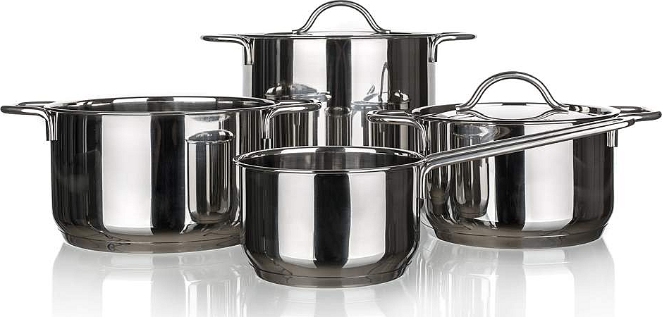 Sada nerezového nádobí Banquet s povrchovou úpravou nerezu a natavenými držadly.