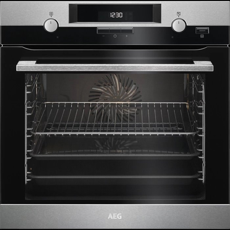 Vestavná trouba AEG s funkcí parního pečení a pravým horkým vzduchem. Energetická třída A a celkový vnitřní objem 71 litrů.