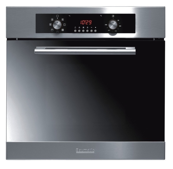 Vestavná multifunkční trouba Baumatic v černo-nerezovém provedení s grilem, kruhovým tělesem a ventilátorem. Energetická třída A, objem 50 l a 7 programů. Segmentový displej a minutka...