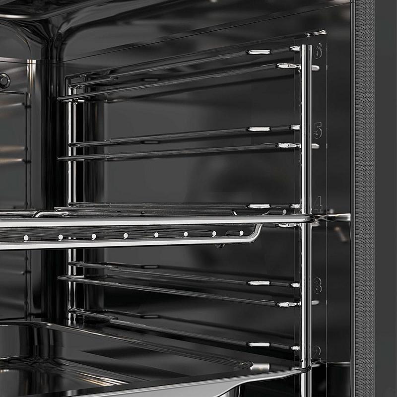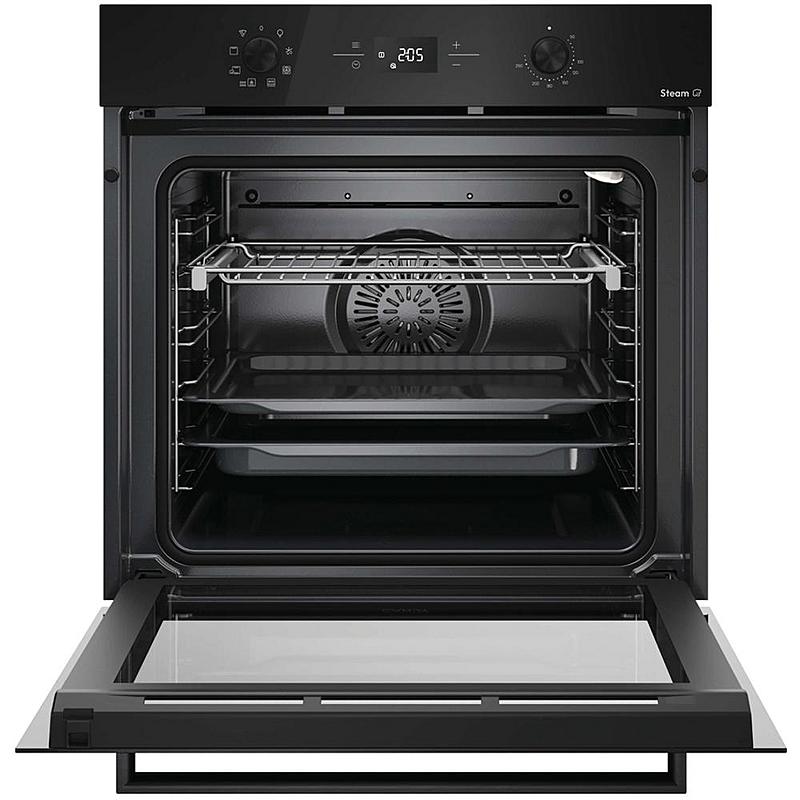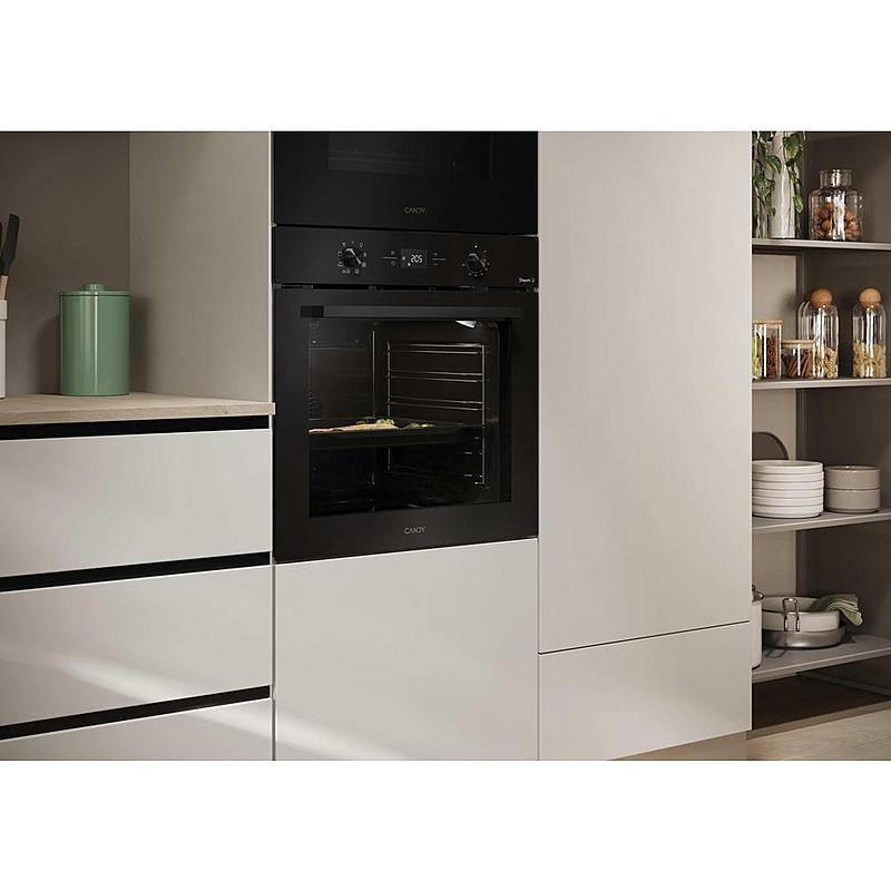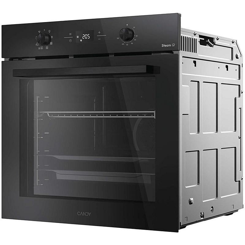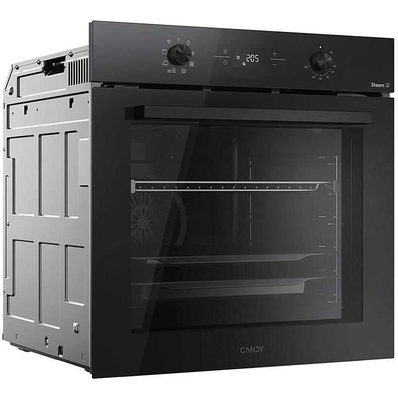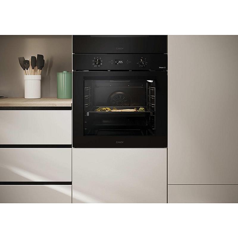 Multifunkční vestavná trouba Candy s teleskopickým výsuvem, tlumeným zavíráním a parní funkcí. Energetická třída A+ a horký vzduch.