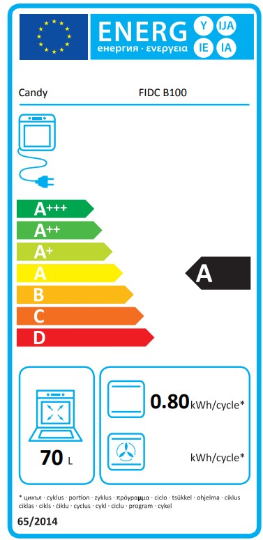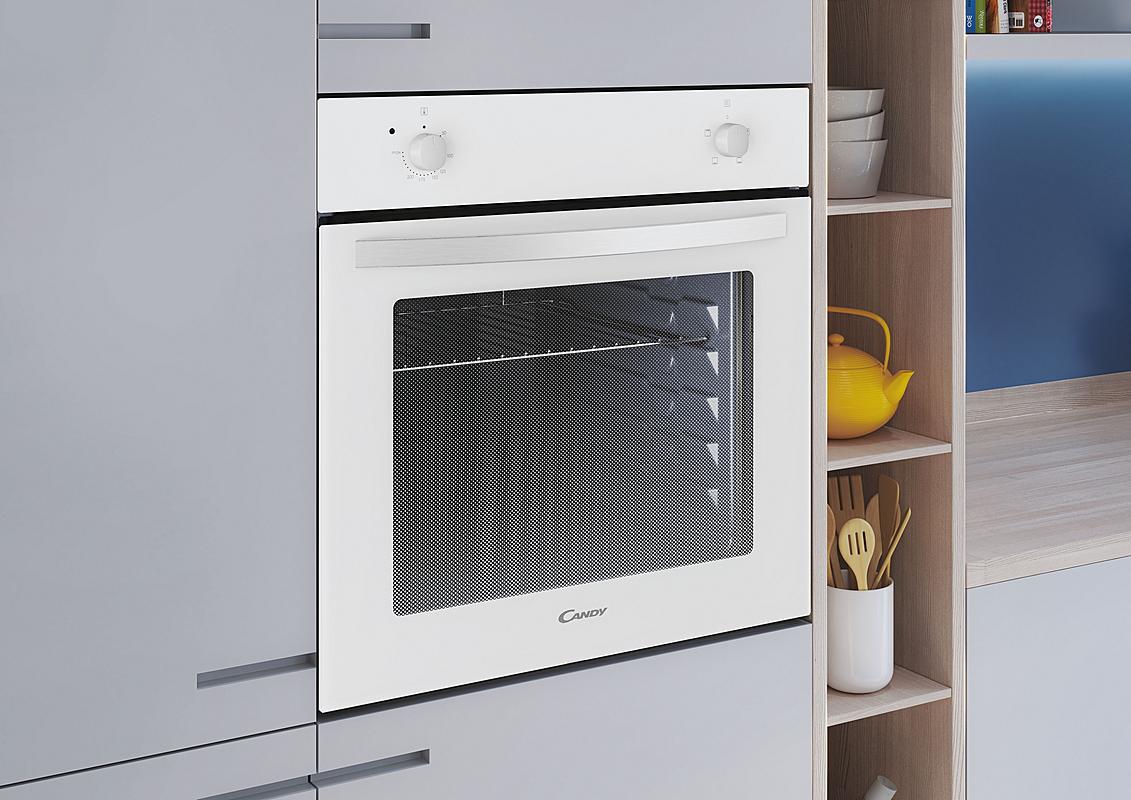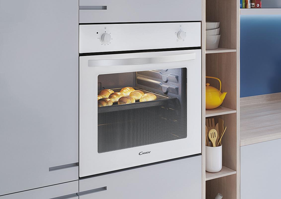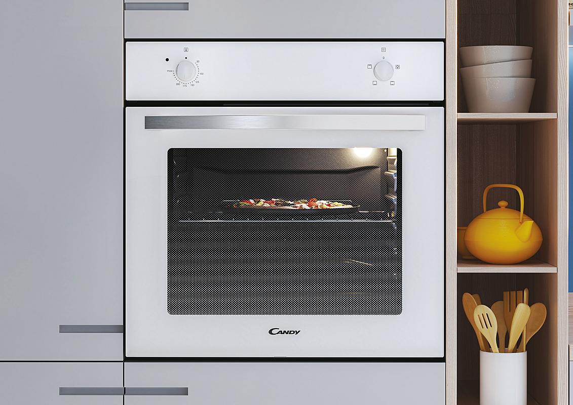 Vestavná trouba Candy s grilem, statickým pečením a spodním ohřevem. Dvě bezpečnostní skla, energetická třída A a objem 70 l.