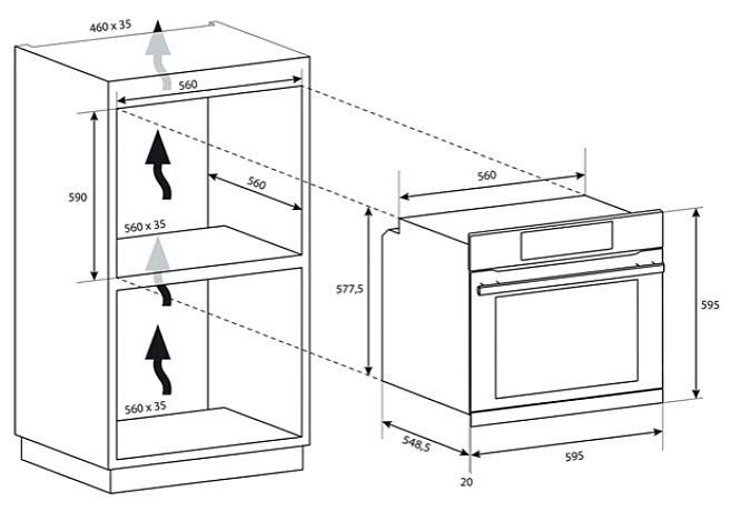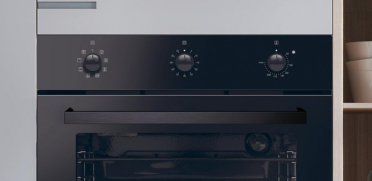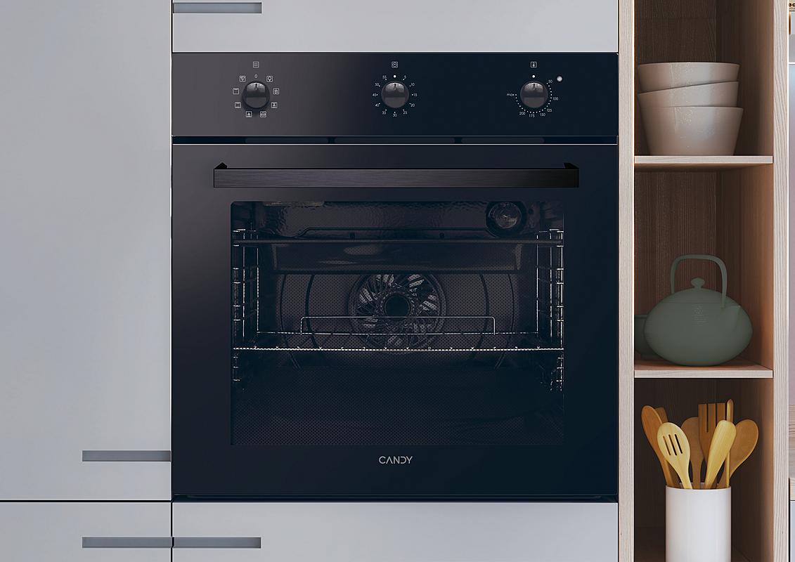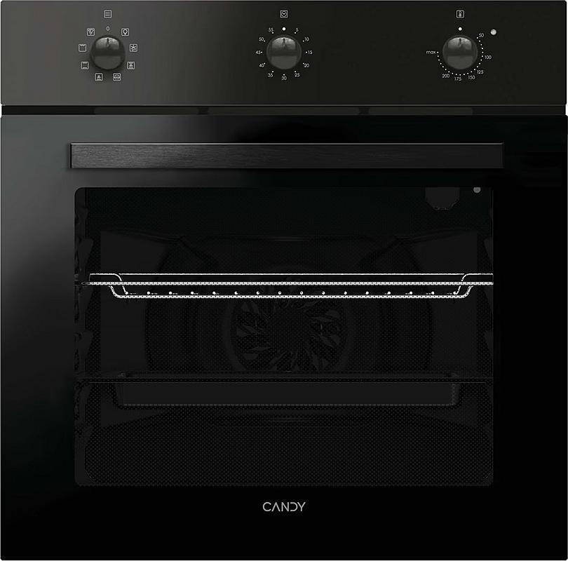 Vestavná multifunkční trouba Candy s grilem, ventilátorem a mechanickou minutkou. Energetická třída A+ a objem trouby 65 l.
