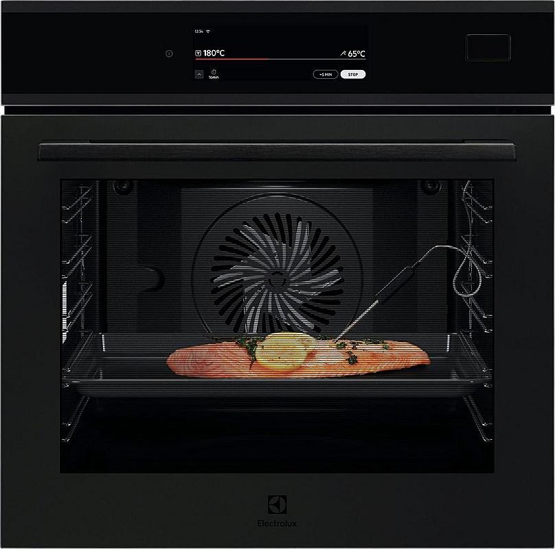Multifunkční vestavná trouba Electrolux s parní funkcí, dotykovým ovládáním a ventilátorem. Energetická třída A++ a objem 70 l.