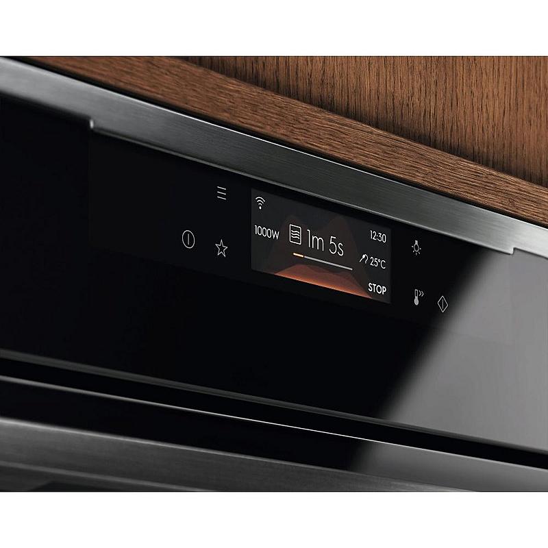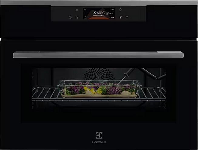 Multifunkční trouba Electrolux s teplotní sondou, mikrovlnnou funkcí a možností WiFi připojení. Energetická třída, 25 programů a celkový objem 44 litrů.