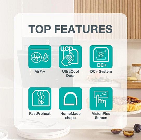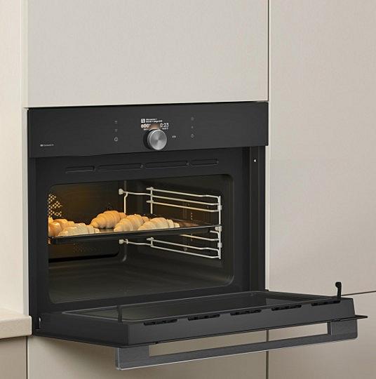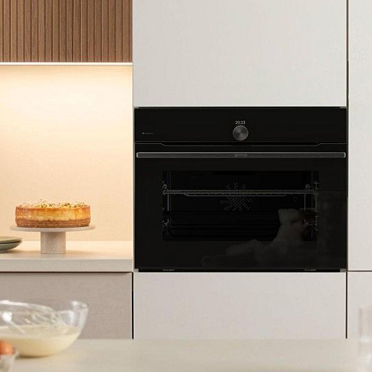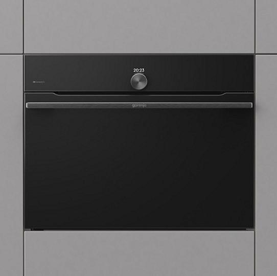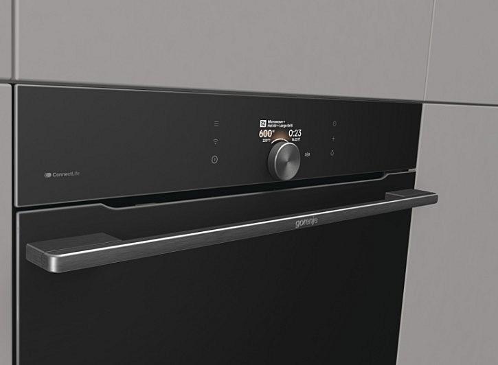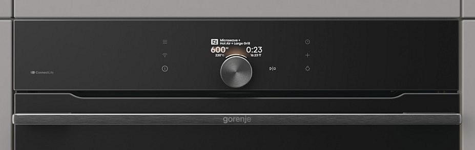 Kompaktní vestavná trouba Gorenje s funkcí mikrovlnky, grilem a horkým vzduchem. Objem 50 l, možnost ovládání přes WiFi a funkce udržování teploty.