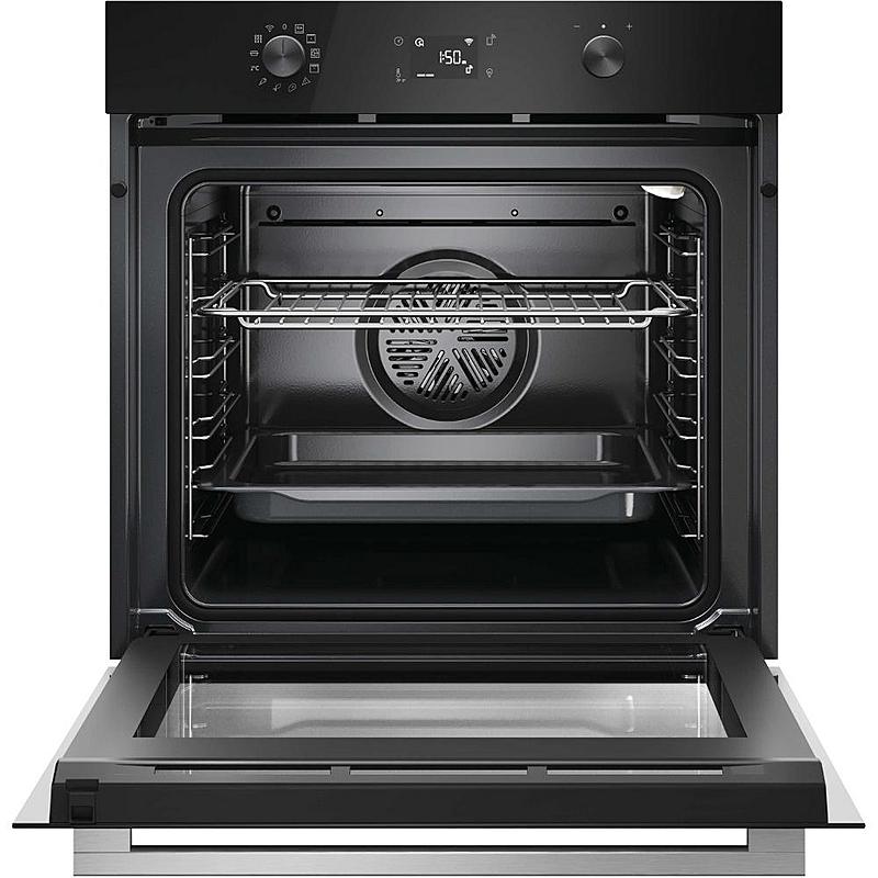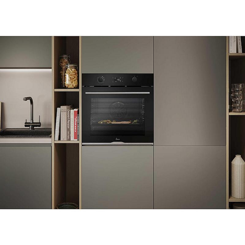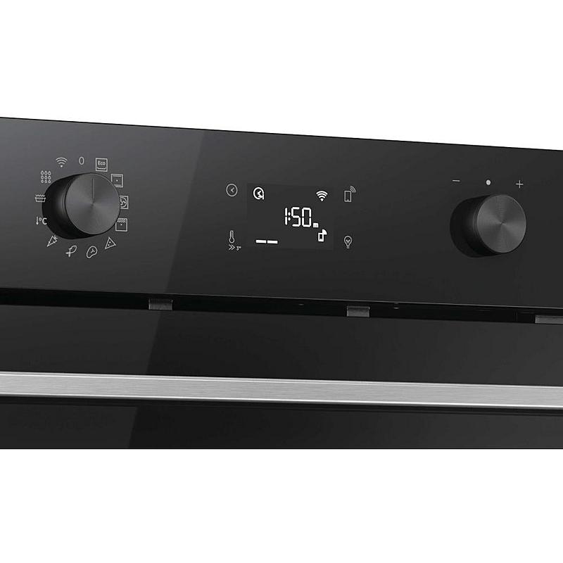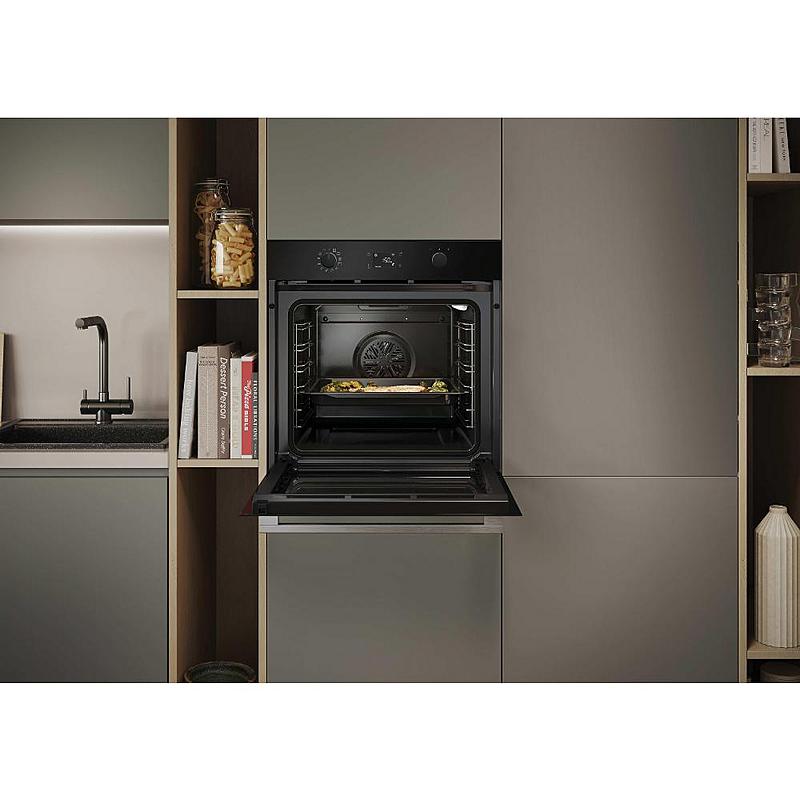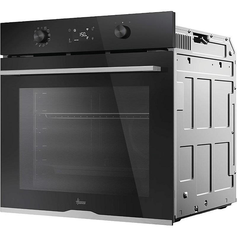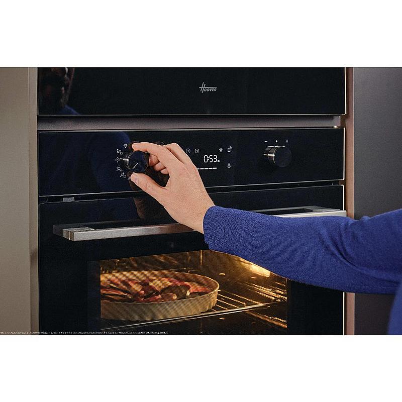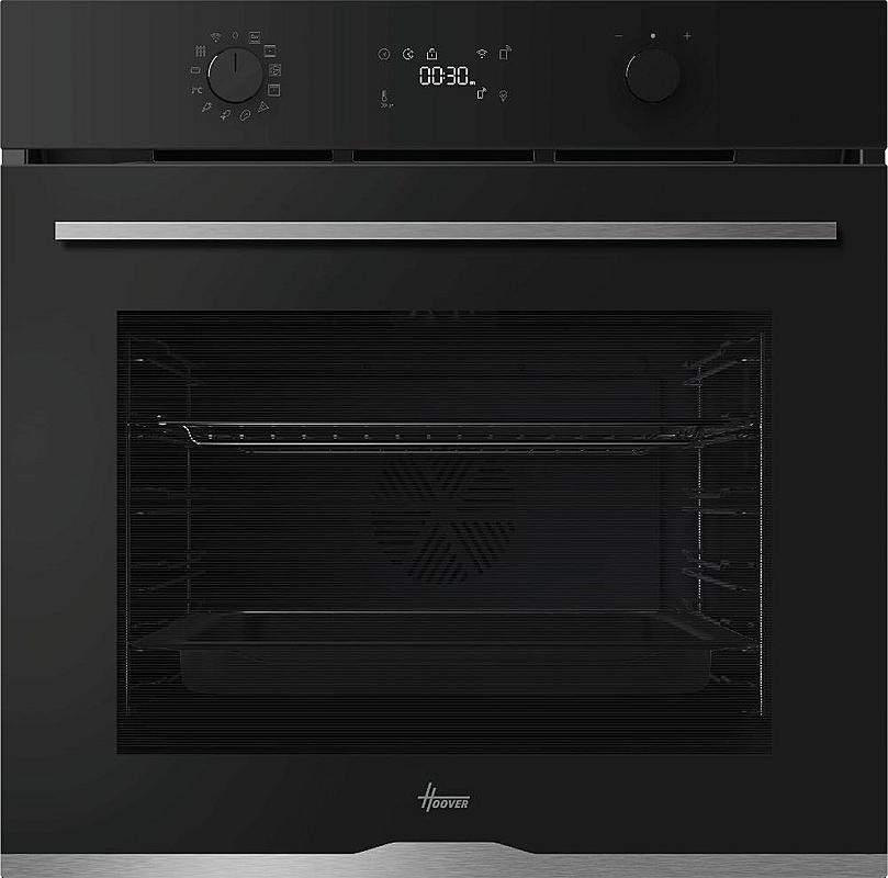 Multifunkční vestavná trouba Hoover s elektronickým displejem, horkovzduškou troubou, grilem a funkcí pizza. Energetická třída A++ a objem 78 l.