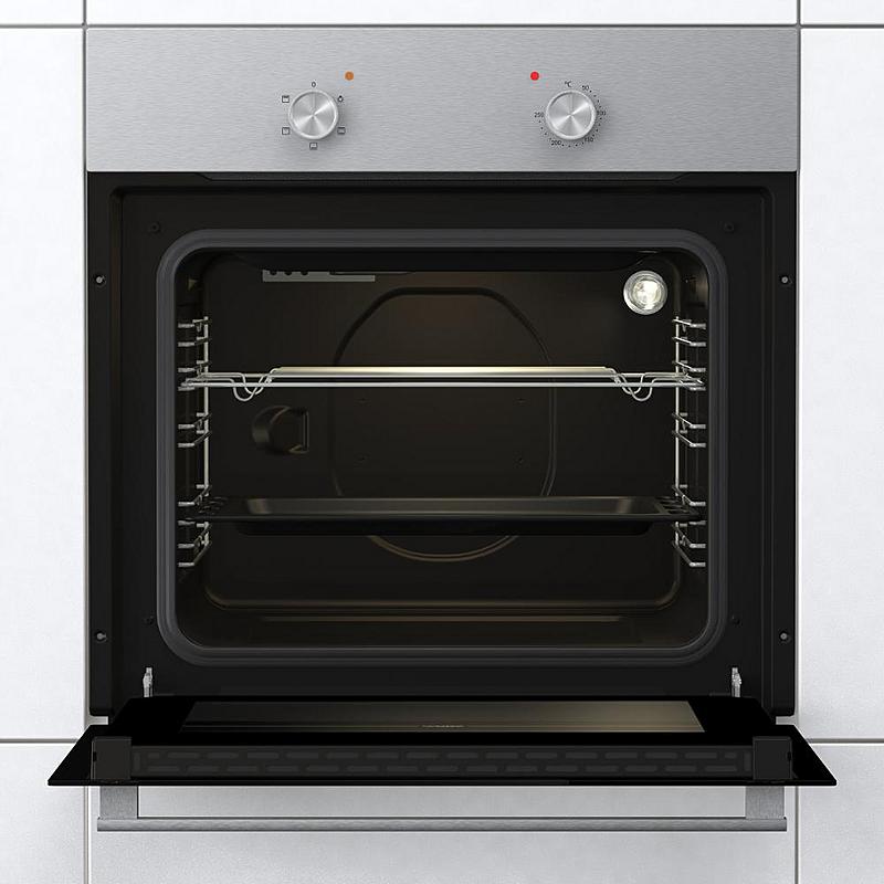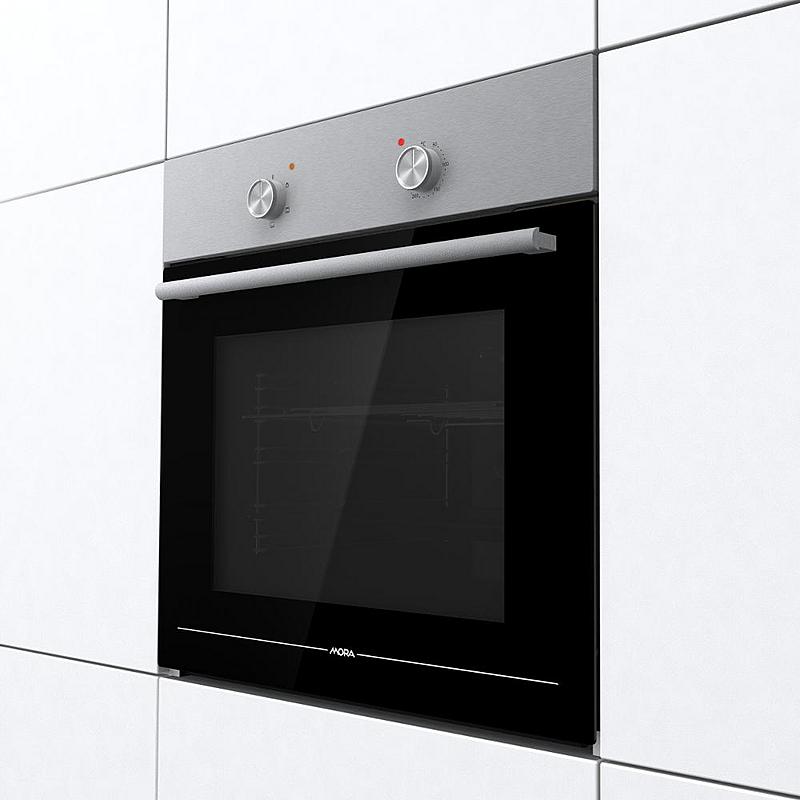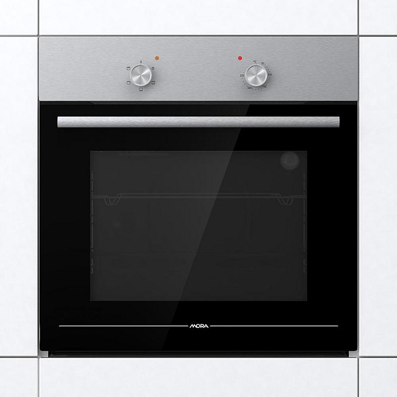 Vestavná trouba Mora s grilem, ergonomickými knoflíky a funkcí čištění parou. Energetická třída A a odnímatelné vnitřní sklo dvířek.