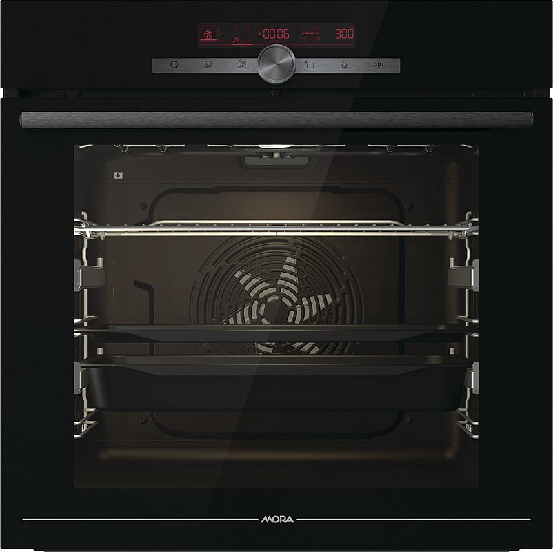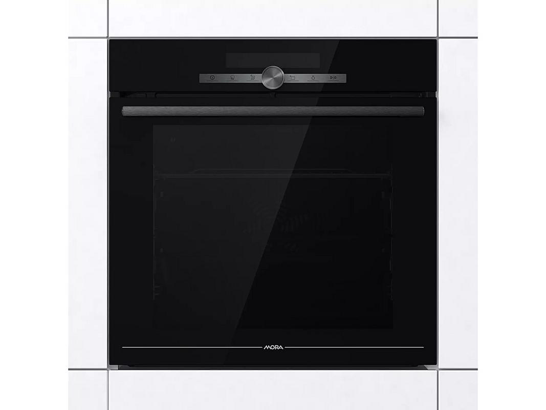 Multifunkční vestavná pyrolytická trouba Mora s funkcí páry, termosondou a 22 funkcemi. Odložený start, teleskopické výsuvy a kruhové topné těleso.