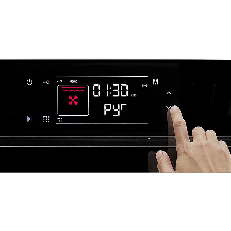 Vestavná trouba Philco s displejem a funkcí odloženého startu. Energetická třída A, maximální příkon 2600 W a celkový objem trouby 78 litrů.
