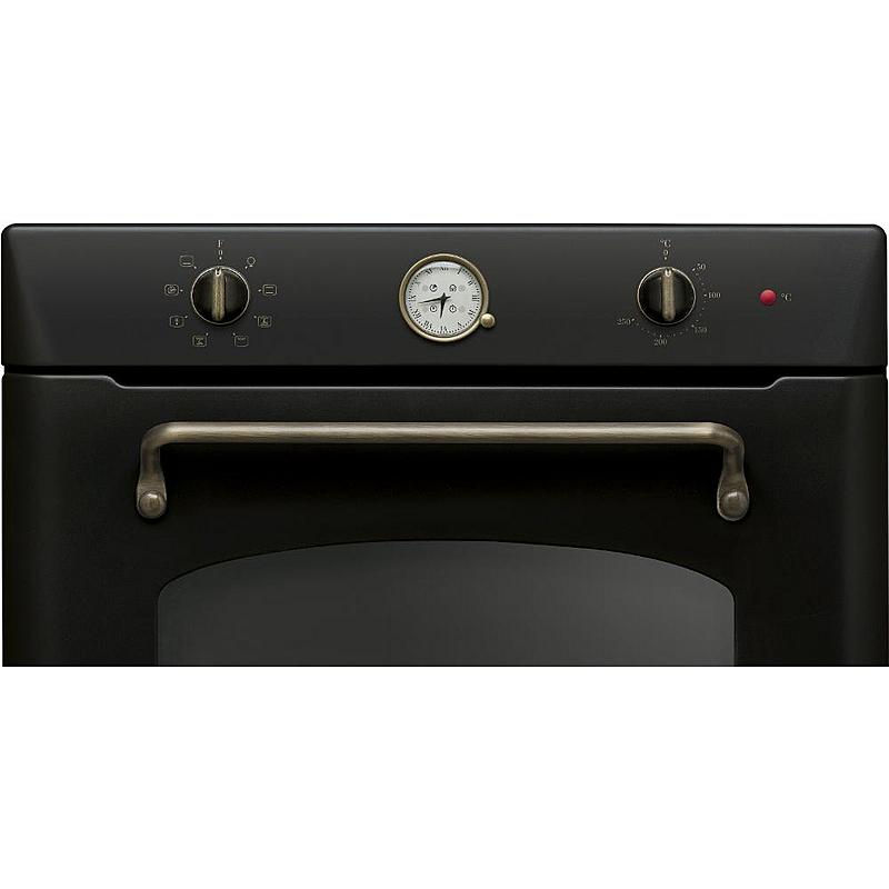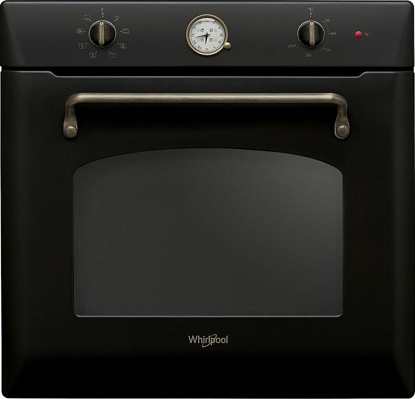 Retro vestavná trouba Whirlpool s kruhovým topným tělesem, mechanickými hodinami a minutkou. Energetická třída A a vnitřní objem 73 l.