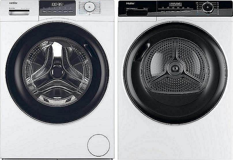 Sada předem plněné pračky a kondenzační sušičky Haier na 9 kg prádla. Invertorový motor a tepelné čerpadlo.