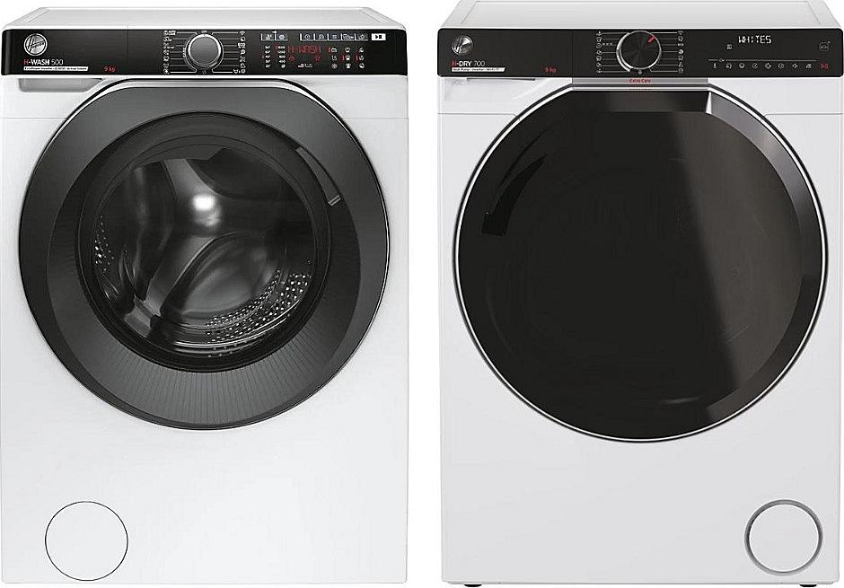 Set pračky a sušičky Hoover na 9 kg prádla. Invertorový motor, tepelné čerpadlo a možnost připojení na odpad.