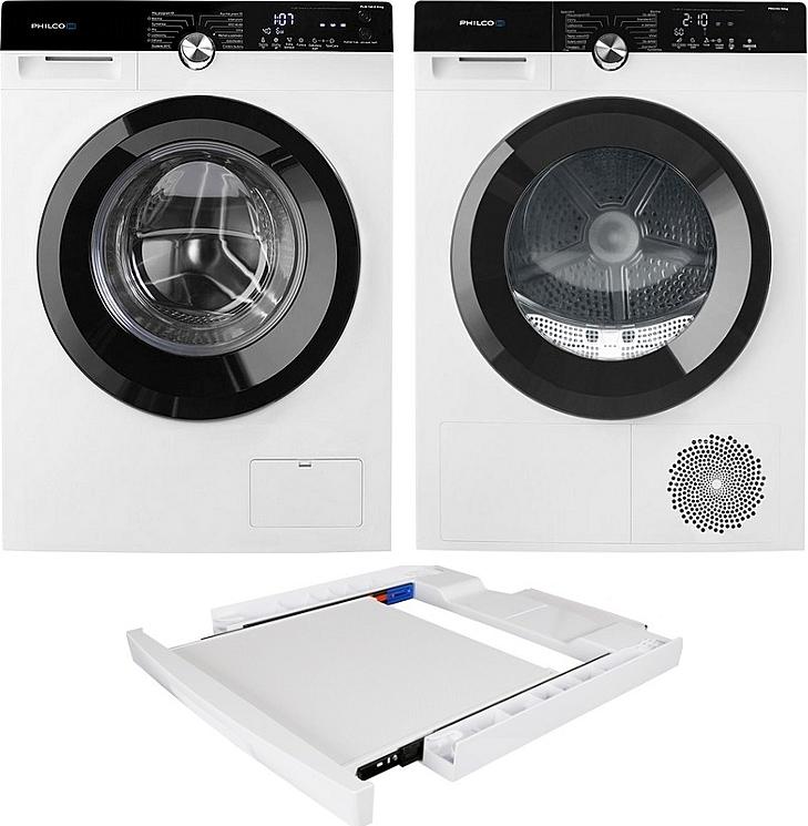 Set pračky a sušičky Philco na 9 kilogramů prádla s českým ovládacím panelem a invertorovým motorem v sadě s výsuvným mezikusem.