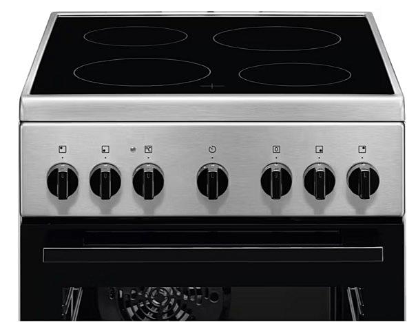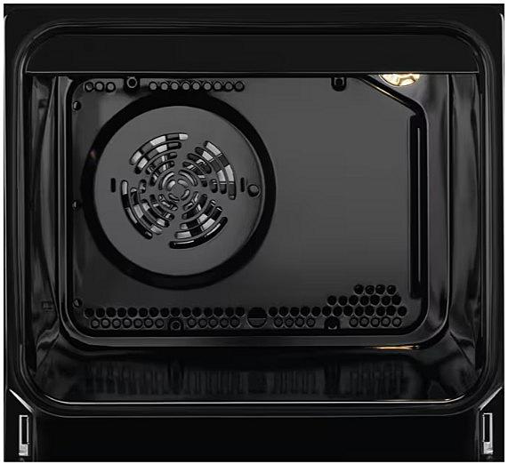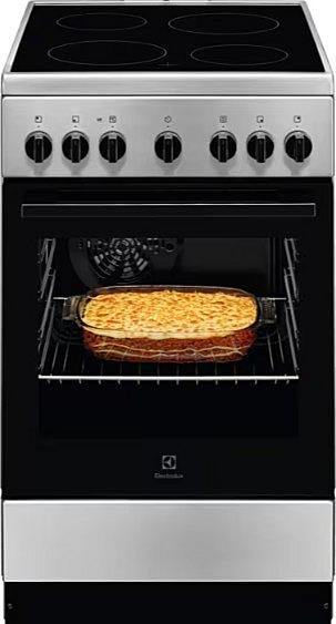Elektrický sporák Electrolux se sklokeramickou deskou, grilem, horkým vzduchem a ventilátorem. Energetická třída A a spodní odkládací zásuvka.