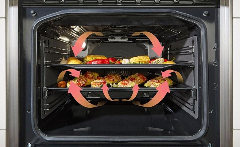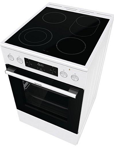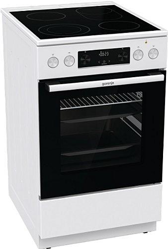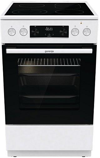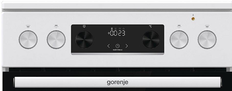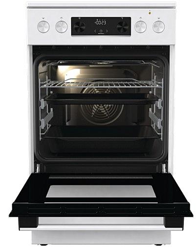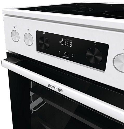 Elektrický sporák Gorenje se sklokeramickou varnou deskou, tlumeným zavíráním dvířek a pravým horkým vzduchem. Oválná a duo zóna a MultiAir cirkulace horkého vzduchu.