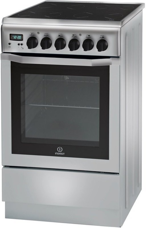 Sklokeramický sporák Indesit se 4 varnými zónami a elektrickou troubou o objemu 56 litrů.