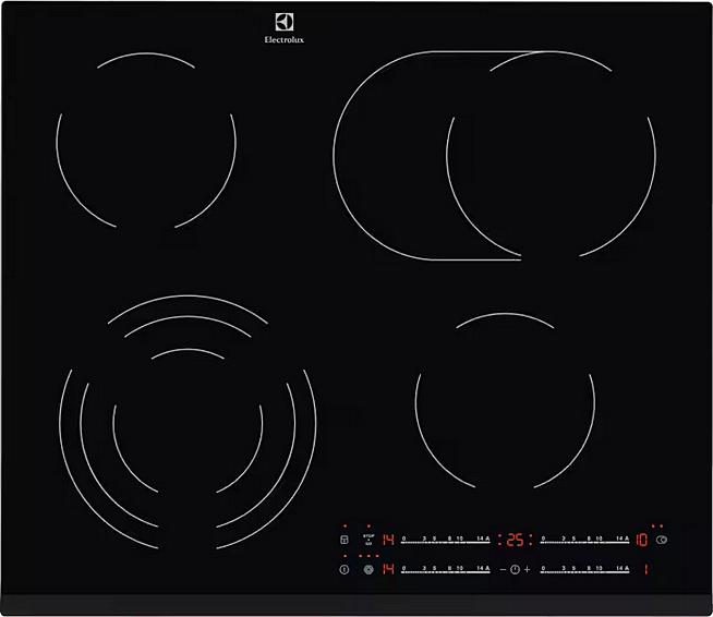 Sklokeramická varná deska Electrolux se 4 varnými zónami, podsvícenými ukazateli a multizónami.