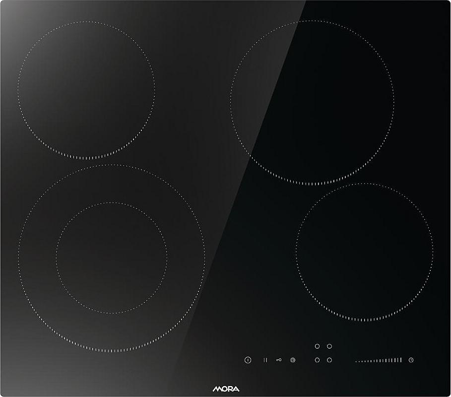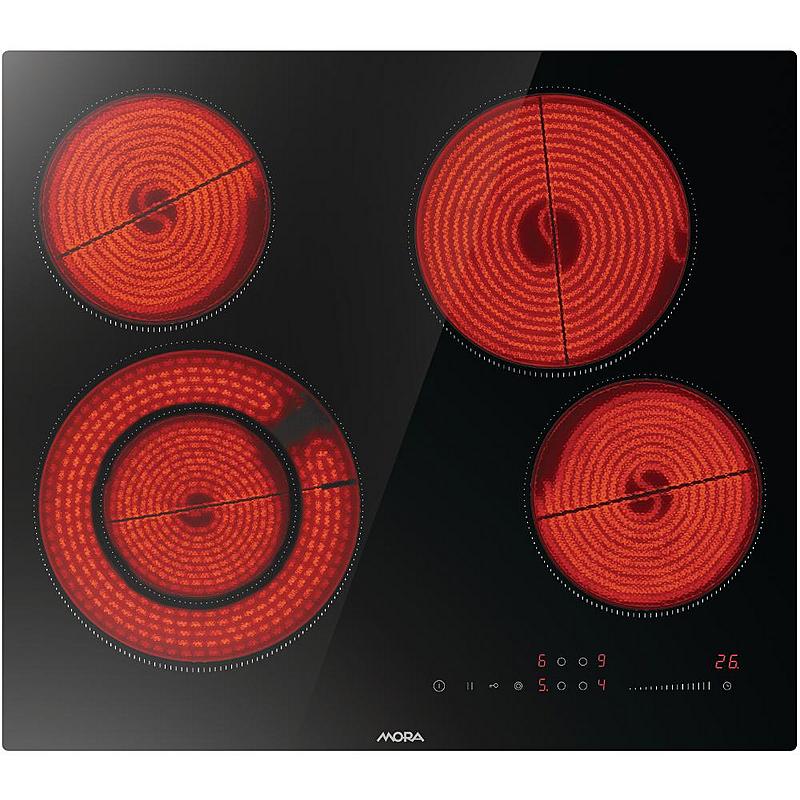 Sklokeramická varná deska Mora s plynulou regulací výkonu, dětskou pojistkou a jednou duozónou.