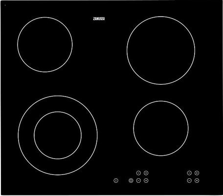 Samostatná sklokeramická elektrická deska o šíři 59 cm. Dotykové ovládání, ukazatel zbytkového tepla, automatické vypnuté. Dvouokruhová rozšířená varná zóna.