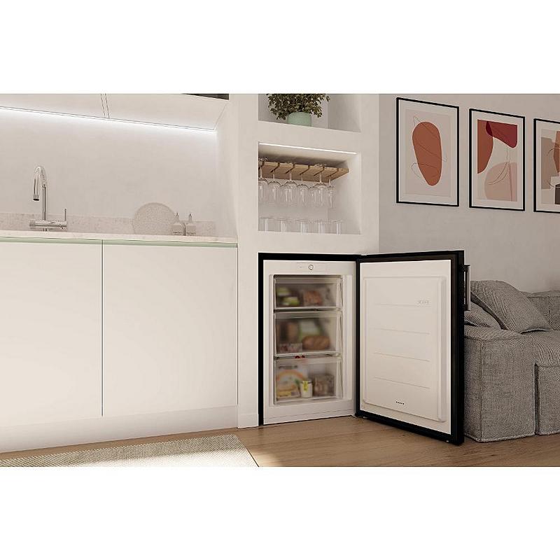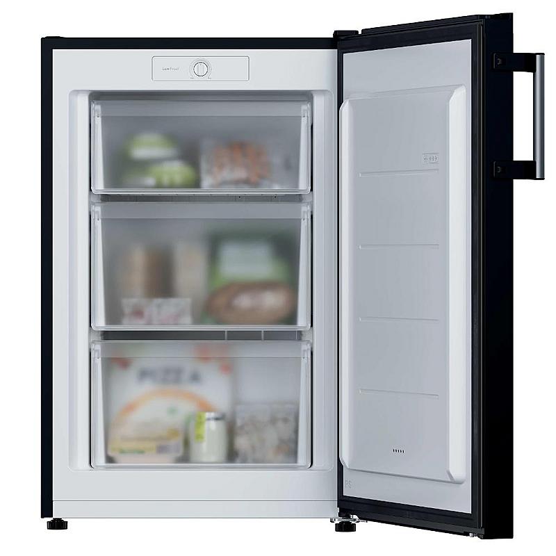 Šuplíkový mrazák Candy s Low Frost mrazením, mechanickým ovládáním a možností umístění až do -15°C. Celkovým objem 90 l a možnost změny směru otevírání.