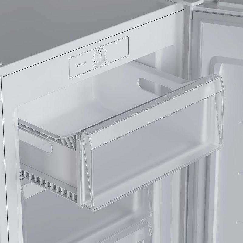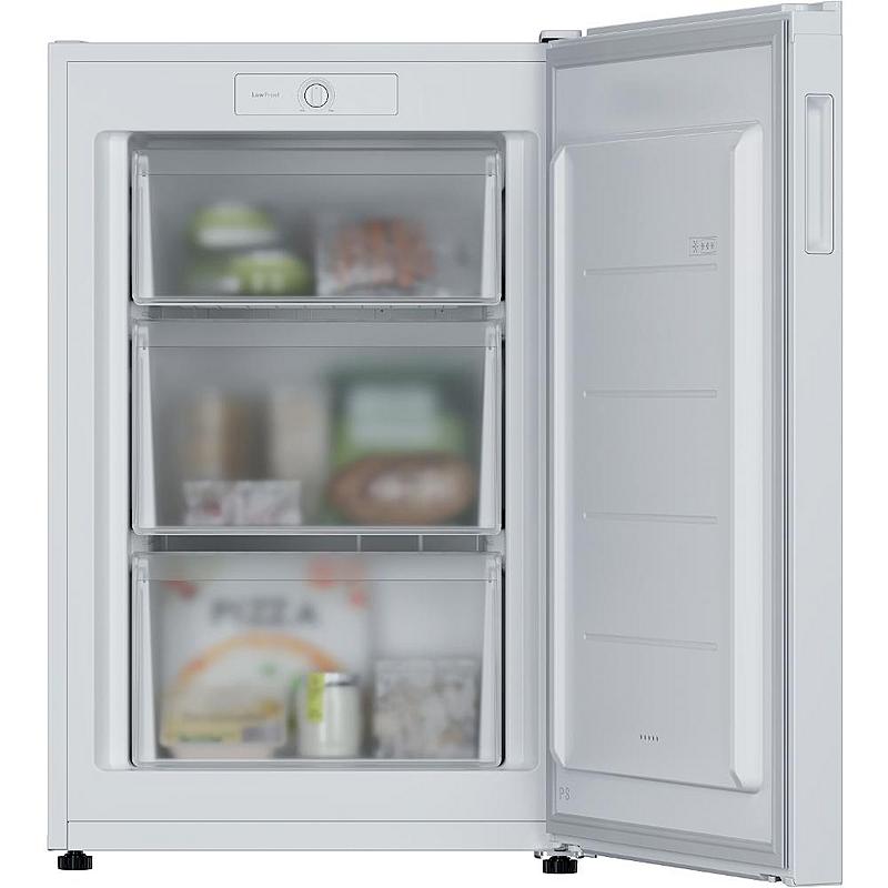 Šuplíkový mrazák Candy s mechanickým ovládáním, LoW Frost chlazením a možností umístění až do -15 °C. Objem 90 l a možnost změny směru otevírání.