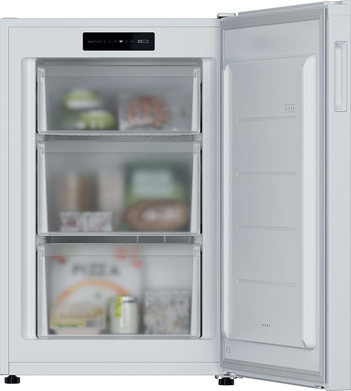 Skříňový mrazák Candy s elektronickým ovládáním, LowFrost technologií a funkcí super mrazení. Energetická třída D, objem 90 l a alarm zvýšené teploty.
