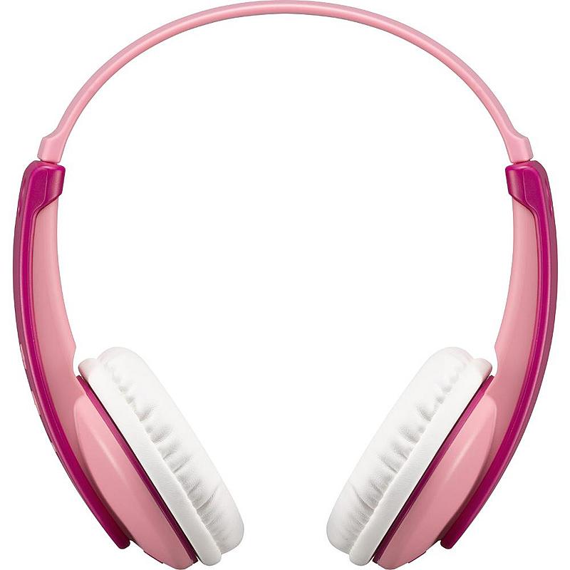 Dětská bezdrátová sluchátka JVC s aktivním omezovačem hlasitosti a vestavěným mikrofonem.