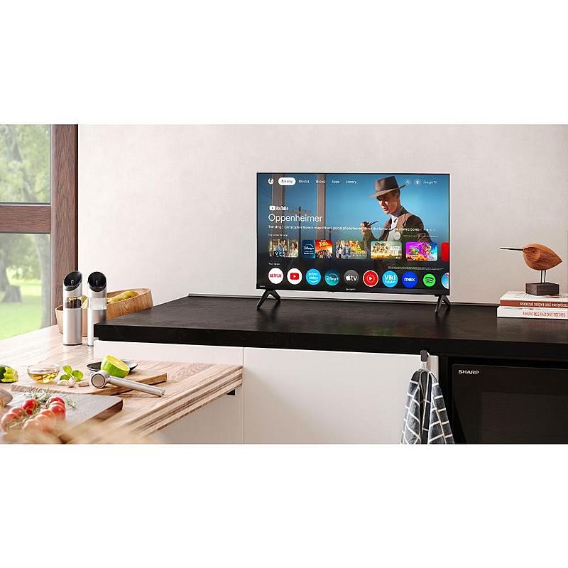 Malá smart televize Sharp s Bluetooth, Hbb Tv a bezrámečkovým designem. Úhlopříčka 60 cm a Direct LED podsvícení.