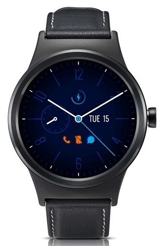 Chytré hodinky Alcatel s displejem o velikosti 1,39 palce a koženým řemínkem.