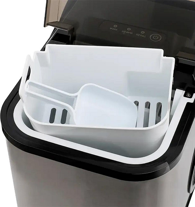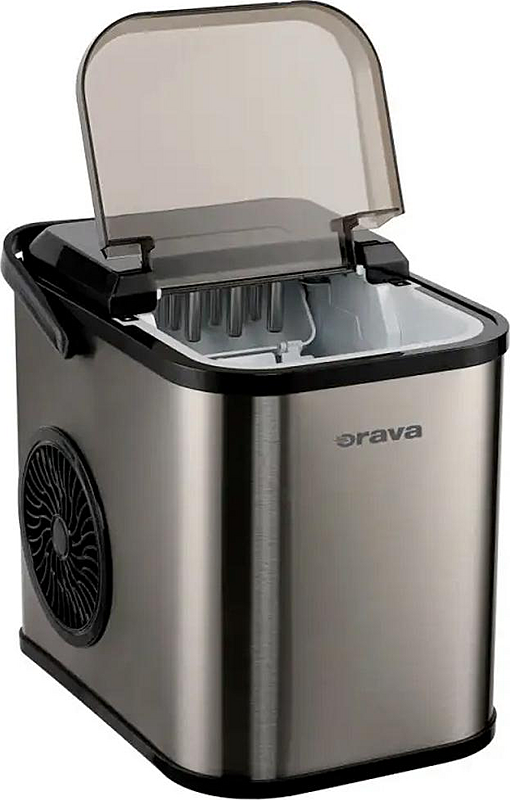 Výrobník ledu Orava s příkonem 120 W a kapacitou nádržky 1,1 litru.