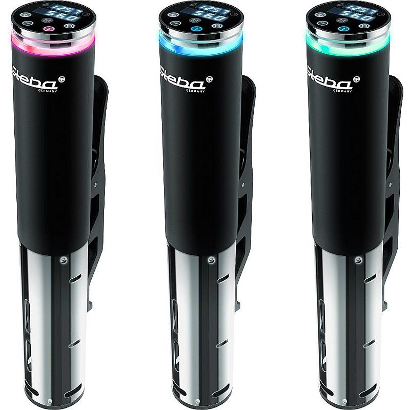 Sous-vide vařič Steba se 4 automatickými programy, osvětleným LCD displejem a příkonem 1200 W.