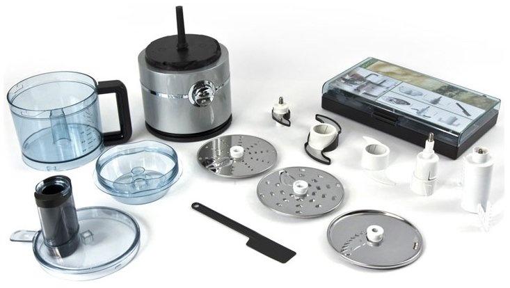 Multifunkční mixér značky MORPHY RICHARDS z nerez oceli a jednoho odlitku. Obsahuje nástrojovou sadu s deseti přídavnými nástroji.