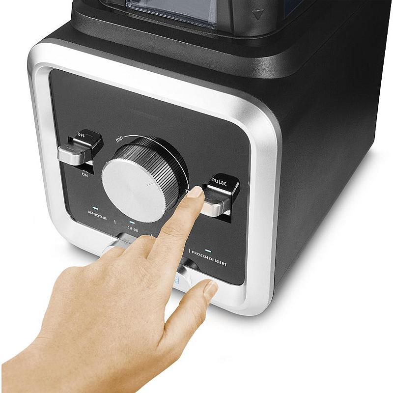 Stolní mixér Philco s nerezovým 6čepelovým nožem, LED osvětlením a ocelovými převody. Objem nádoby 2 l a plynulá regulace výkonu.