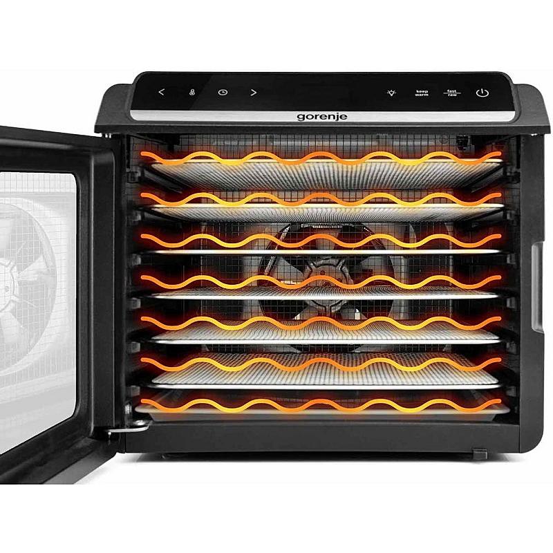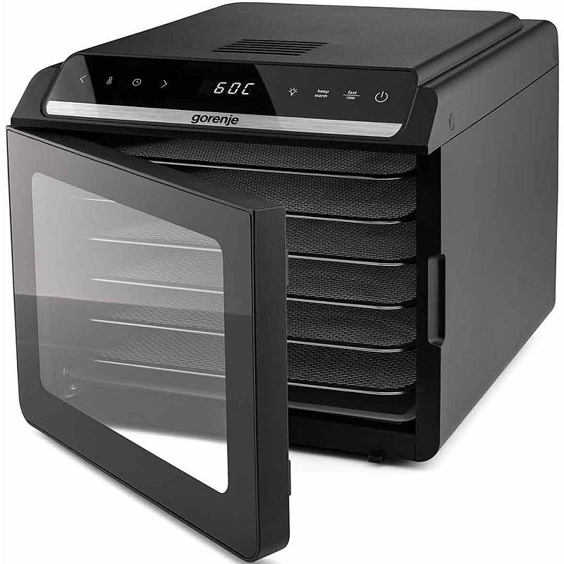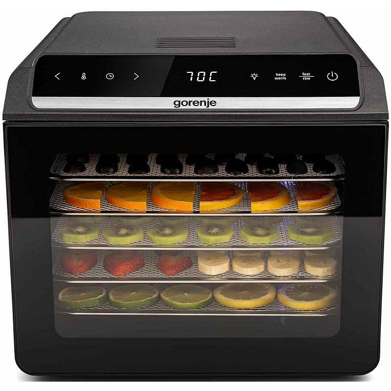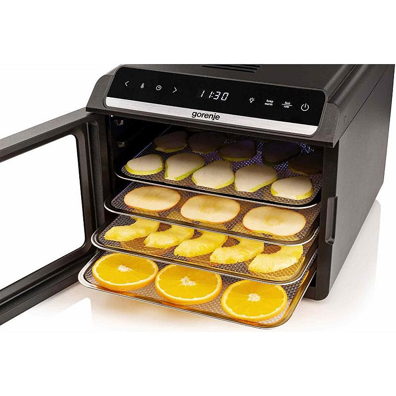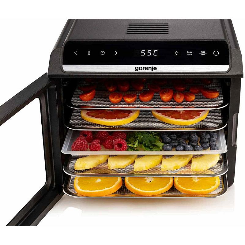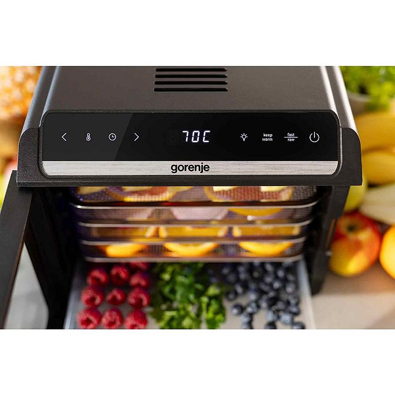 Sušička potravin Gorenje se 6 sušícími platy, LED displejem a časovačem.