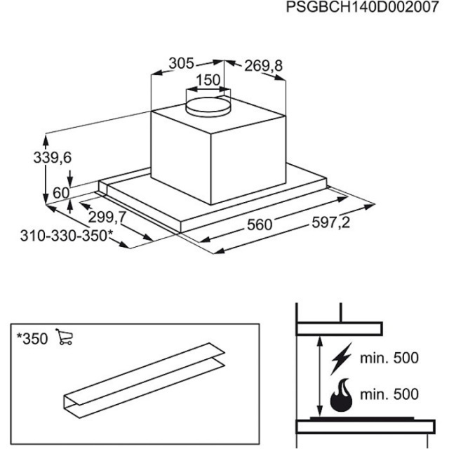Teleskopický odsavač par Electrolux se třemi rychlostmi, halogenovým osvětlením a možností recirkulace. Výkon odsávání až 650 m3 za hodinu a šířka 60 centimetrů.