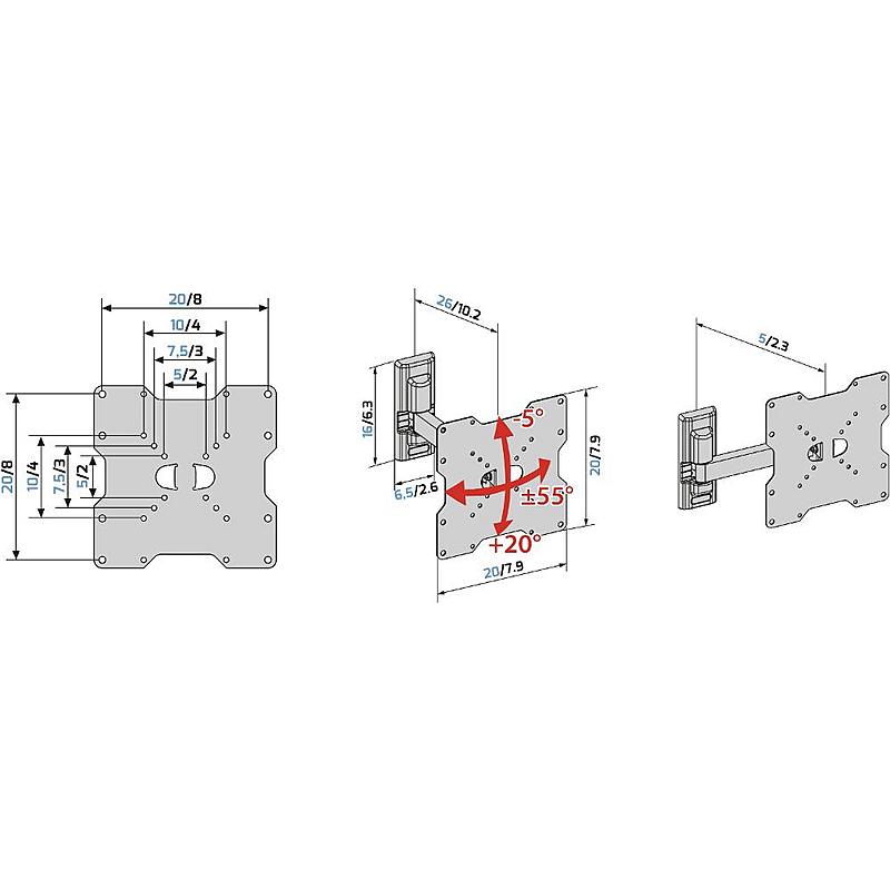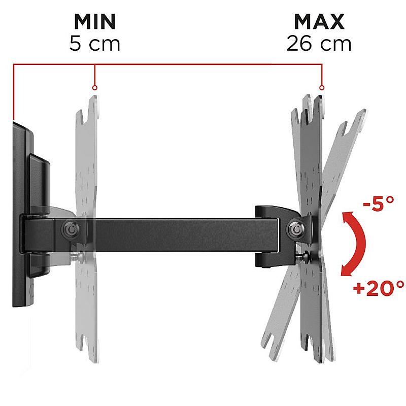 Držák na televizi Meliconi s otočným ramenem pro všechny televizory s roztečí otvorů VESA 75-100-200 mm.