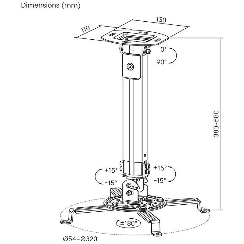 Stropní výsuvný držák projektoru Stell s nosností 15 kg.