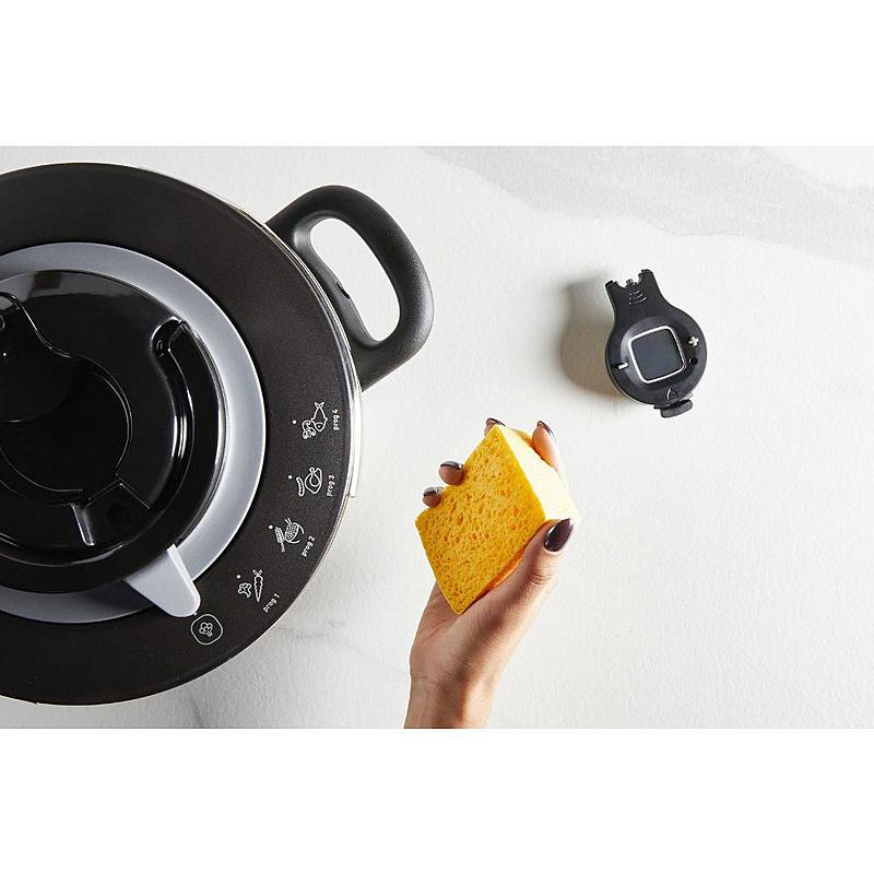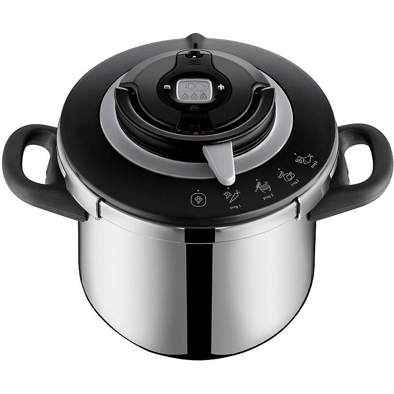 Tlakový hrnec Tefal s objemem 8 l a odnímatelnou minutkou.