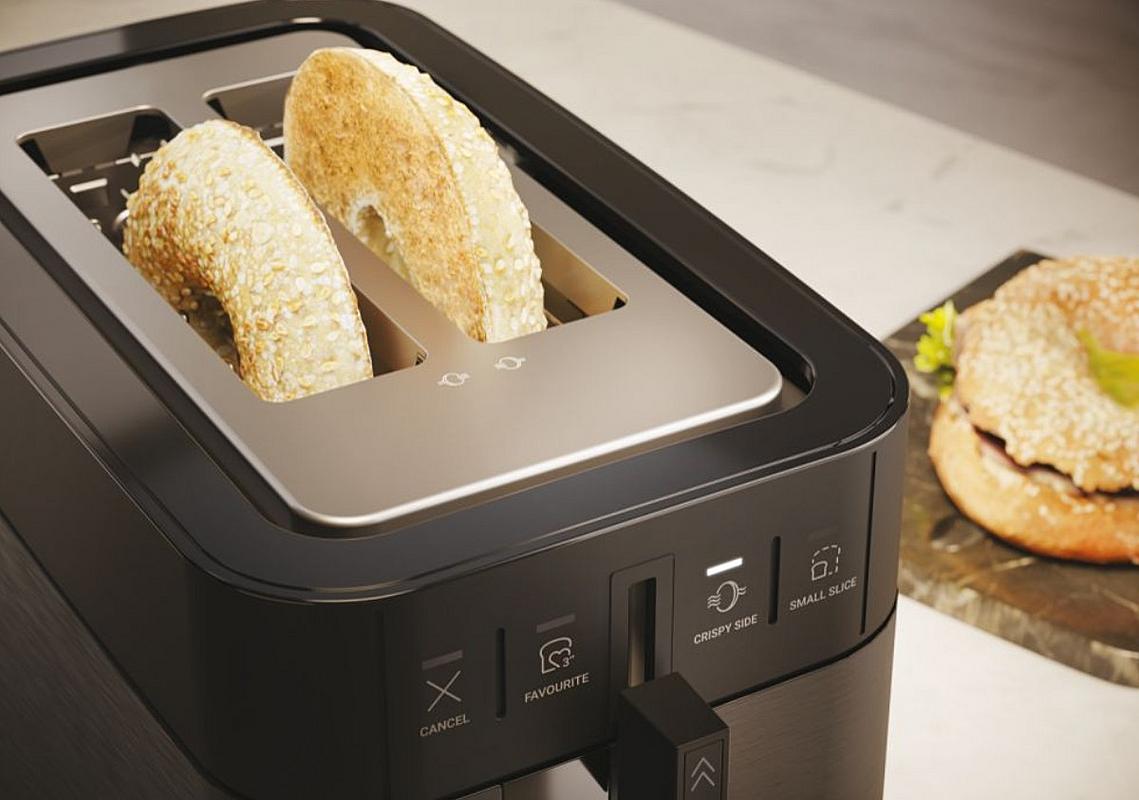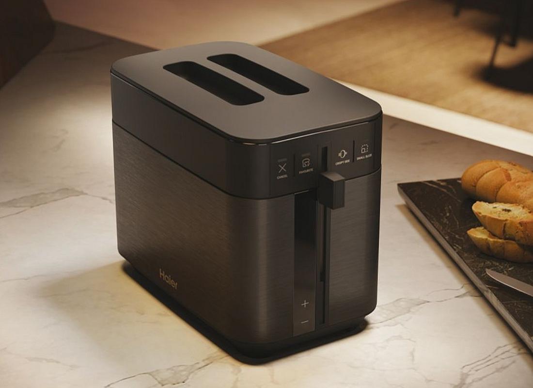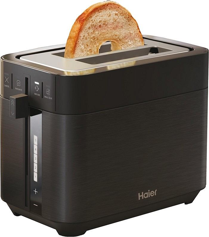 Topinkovač Haier s regulací stupně opečení, intuitivním ovládáním s indikátorem provozu a dotykovým LED panelem.